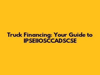 Securing truck financing can feel like navigating a maze, especially when you encounter acronyms like IPSEIIOSCCADSCSE. Don't worry, guys, we're here to break it all down and make the process smoother. In this guide, we'll explore what truck financing entails, how these (sometimes intimidating) terms fit into the picture, and how to get the best deal for your business. Whether you're an owner-operator or managing a fleet, understanding the ins and outs of truck financing is crucial for making informed decisions and keeping your business moving forward.