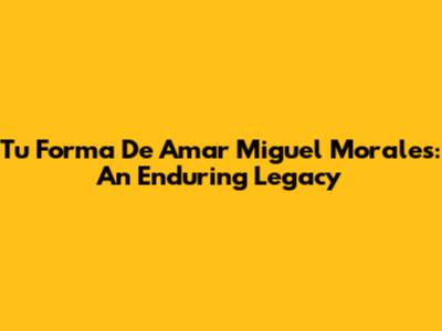 Tu Forma De Amar: Miguel Morales' Enduring Legacy