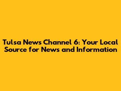 Hey guys! When you're looking for the latest happenings in the Tulsa area, Tulsa News Channel 6 is often your go-to. This local news station has been a staple in the community for ages, providing residents with up-to-the-minute information on everything from breaking news and weather alerts to community events and sports. It's more than just a TV channel; it's a vital link connecting people to what's going on right in their own backyard. We'll dive into what makes Channel 6 such a trusted source, exploring its history, the types of stories it covers, and how you can stay connected with their broadcasts and online presence. So, grab your coffee, settle in, and let's get the lowdown on Tulsa News Channel 6!