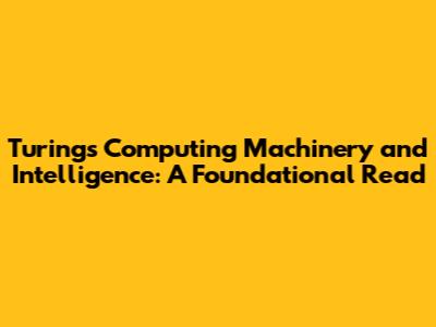 Turing's 'Computing Machinery And Intelligence': A Foundational Read