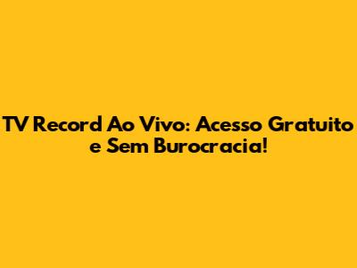 TV Record Ao Vivo: Assista Grátis E Sem Complicações!