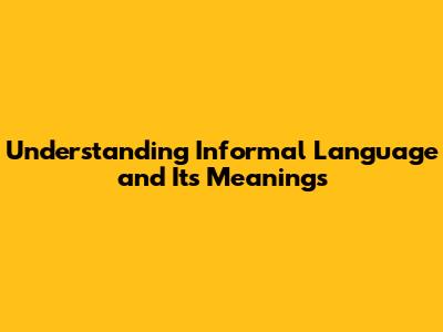 Understanding Informal Language And Its Meanings