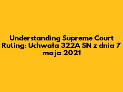 Hey everyone, let's dive into something a bit technical but super important: Uchwała 322A SN z dnia 7 maja 2021. This is a ruling from the Polish Supreme Court (Sąd Najwyższy, or SN), and it's something that has implications for a bunch of legal areas. I'll break it down in a way that's easy to understand, even if you're not a legal eagle. We'll look at what this uchwała is all about, what it covers, and why it matters. Basically, we're going to unpack this legal document together, making it less intimidating and more informative.