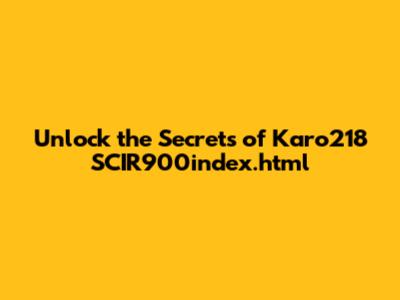 Unlock The Secrets Of Karo218 SCIR900index.html