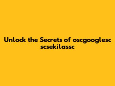 Unlock The Secrets Of Oscgooglesc Scsekilassc