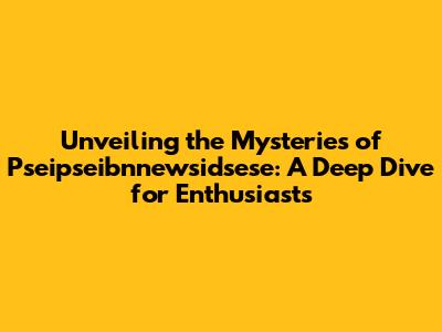 Unveiling the Mysteries of Pseipseibnnewsidsese: A Deep Dive for Enthusiasts