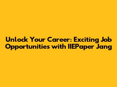 Unlock Your Career: Exciting Job Opportunities With IIEPaper Jang