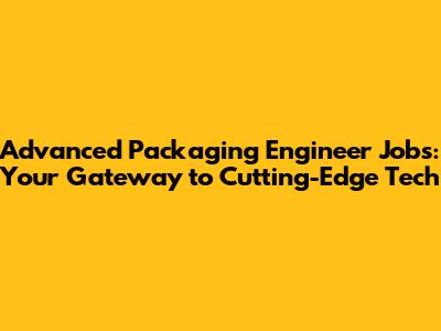 Unlocking Advanced Packaging Engineer Job Opportunities