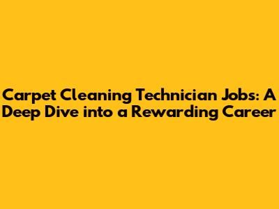 Unlocking Carpet Cleaning Technician Job Opportunities