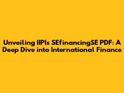 Hey guys! Let's talk about something that can sound a bit dry at first glance, but is actually super important for anyone interested in international finance: the IIPI (International Institute for Public Information) SEfinancingSE PDF. Now, I know what you might be thinking: "PDFs? Financial jargon? Sounds boring!" But trust me, understanding what's inside this document can open up a whole new world of understanding how global markets work, and how various financial instruments are used to fund projects and investments across borders. We will explore what the IIPI SEfinancingSE PDF is all about, breaking down the key concepts, and hopefully making it a bit less intimidating.