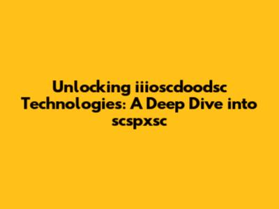 Unlocking Iiioscdoodsc Technologies: A Deep Dive Into Scspxsc
