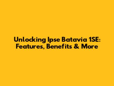 Unlocking Ipse Batavia 1SE: Features, Benefits & More