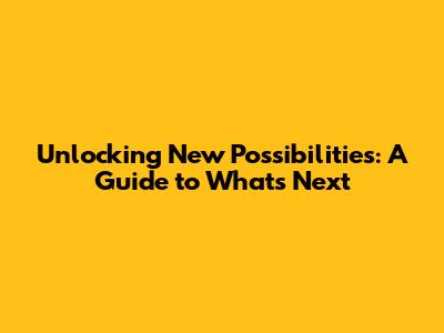 Unlocking New Possibilities: A Guide To What's Next