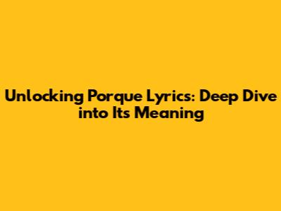 Unlocking 'Porque' Lyrics: Deep Dive Into Its Meaning