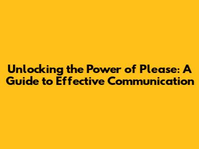 Unlocking The Power Of 'Please': A Guide To Effective Communication