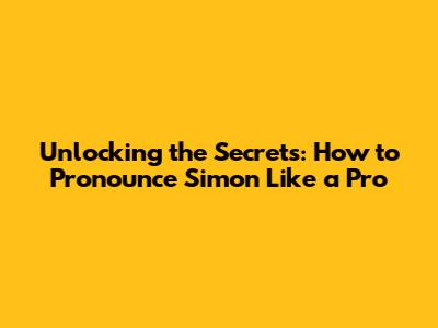 Unlocking The Secrets: How To Pronounce Simon Like A Pro