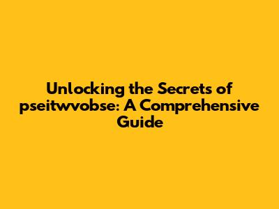 Unlocking The Secrets Of Pseitwvobse: A Comprehensive Guide