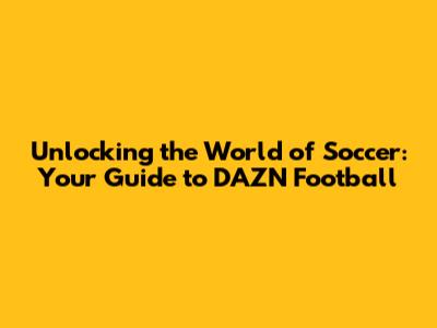 Unlocking The World Of Soccer: Your Guide To DAZN Football