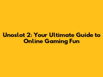 Unoslot 2: Your Ultimate Guide To Online Gaming Fun
