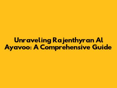Unraveling Rajenthyran Al Ayavoo: A Comprehensive Guide