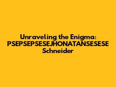 Unraveling The Enigma: PSEPSEPSESEJHONATANSESESE Schneider