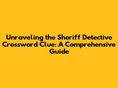 Unraveling The Sheriff Detective Crossword Clue: A Comprehensive Guide