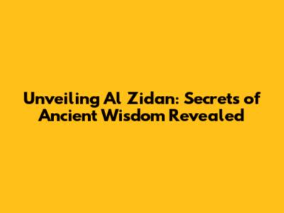 Unveiling Al Zidan: Secrets Of Ancient Wisdom Revealed