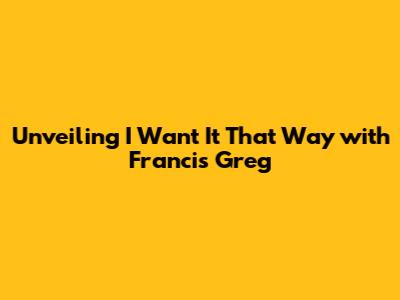 Unveiling 'I Want It That Way' With Francis Greg