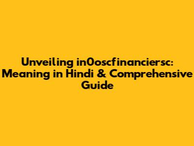 Unveiling In0oscfinanciersc: Meaning In Hindi & Comprehensive Guide