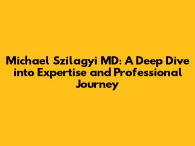 Unveiling Michael Szilagyi MD: Expertise And Insights