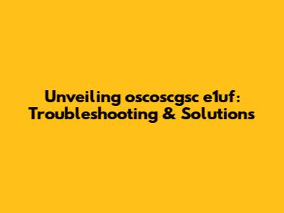Unveiling Oscoscgsc E1uf: Troubleshooting & Solutions