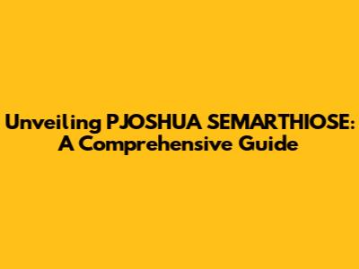 Unveiling PJOSHUA SEMARTHIOSE: A Comprehensive Guide