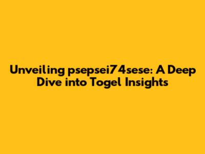 Unveiling Psepsei74sese: A Deep Dive Into Togel Insights