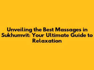 Hey guys, if you're looking for the absolute best massage in the vibrant Sukhumvit area of Bangkok, you've stumbled upon the right place. Sukhumvit is a buzzing hub, and amidst the hustle and bustle, there's a treasure trove of massage parlors ready to melt your stress away. This guide is your ultimate key to unlocking the most rejuvenating massage experiences this part of town has to offer. We'll dive into the types of massages available, what to look for, and, of course, some top recommendations. So, grab a comfy seat and get ready to discover your new favorite spot for some serious pampering!