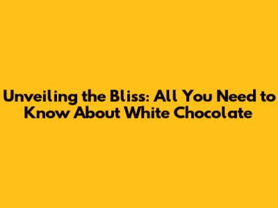 Unveiling The Bliss: All You Need To Know About White Chocolate