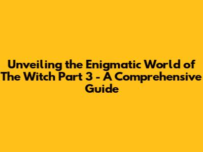 Unveiling The Enigmatic World Of 'The Witch Part 3' - A Comprehensive Guide
