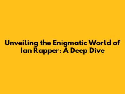 Unveiling The Enigmatic World Of Ian Rapper: A Deep Dive