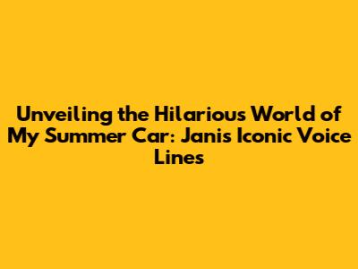 Unveiling The Hilarious World Of My Summer Car: Jani's Iconic Voice Lines