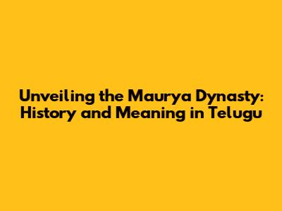The Meaning of Maurya Dynasty: Telugu Words and Significance