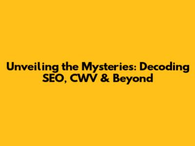 Unveiling The Mysteries: Decoding SEO, CWV & Beyond