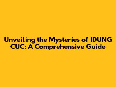 Unveiling The Mysteries Of IDUNG CUC: A Comprehensive Guide