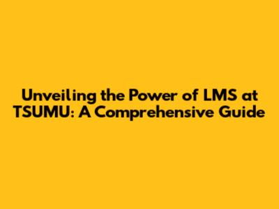 Unveiling The Power Of LMS At TSUMU: A Comprehensive Guide