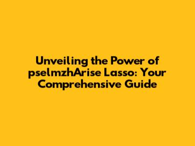 Unveiling The Power Of PselmzhArise Lasso: Your Comprehensive Guide