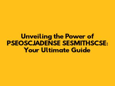 Unveiling The Power Of PSEOSCJADENSE SESMITHSCSE: Your Ultimate Guide