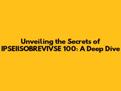Unveiling The Secrets Of IPSEIISOBREVIVSE 100: A Deep Dive