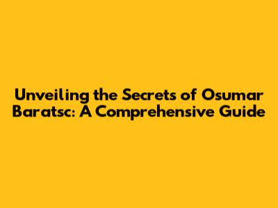 Unveiling The Secrets Of Osumar Baratsc: A Comprehensive Guide