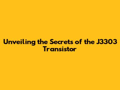 Unveiling The Secrets Of The J3303 Transistor