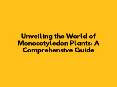 Unveiling The World Of Monocotyledon Plants: A Comprehensive Guide