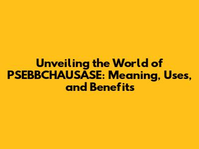 Unveiling The World Of PSEBBCHAUSASE: Meaning, Uses, And Benefits