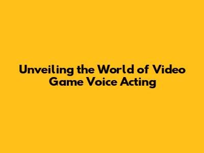 Unveiling The World Of Video Game Voice Acting